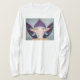 Vit lång-mufde skjortan som presenterar "fen av glädje" vid blandat massmedia konstnären, Wendy M. Juhl