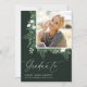 Elegantens meddelande till fotot studenten innehåller ett fyrkantigt foto som är märkt med grönt vattenfärgsblad och vita blommor. "Student" visas under, tillsammans med student och namn och skola eller högskola. Lägg till ett personligt meddelande på baksidan, tillsammans med ett ytterligare foto.