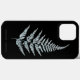 Fern teckning. Gymnogramma L’herminieri eller Gymnogramma Herminieri. Svartvitt 1800-talets botaniska illustration av en fern med turkoshöjda blå accenter. röntgeneffekt. Svart bakgrund och vit kontur eller kontur. Negativt inverterat färg.