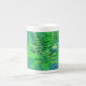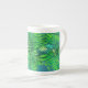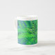 Fern löv, blommigt design, grön, blå och grönt benporslin mugg