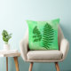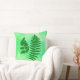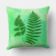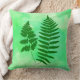 Dekorativ kudde i en silhuett med två fernfronder, i emerald grönt, mot en mjuk myntfärgad grönt vattenfärgbakgrund