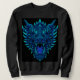 En kraftfull dragonshuvud andar mystiska blå lågor med glödande skalor, vassa tänder och hotande ögon. Designad i fet vektorkonst med nyare högdagrar av blått och turkos, är denna mycket detaljerade grafik skapat på en genomskinlig bakgrund, skapar den perfekt för t-shirts, hookus och streetwear mode. Perfekt för fläkt med fantasi-, mytologi-, spel- och episka drakonillustrationer.