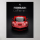 Celebrate the pinnacle of Italian automotive engineering with this stunning Ferrari LaFerrari poster. Featuring a striking front-view composition of the iconic red hypercar against a sleek dark background, this design perfectly captures the aggressive aerodynamics and legendary status of Ferrari's flagship model. The clean, modern layout includes key performance specifications, highlighting the car's breathtaking acceleration and top speed.