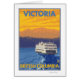 Ferry and Mountains - Victoria, BC Canada - Vintage resor Poster 2007. Bilden skildrar scener från Victoria, British Columbia, Kanada.