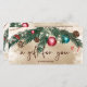 Modern logotyp presentkort med julklapp ljus grönt gräs grenar snö med söt illustration av glitter julklapp boll, grönt gräs grenar, mistletoe, gräs koner, ljus guld på luxuriös metallfolie bakgorund. Hämta redo till shoppingsäsongen och jul. Perfektens gåva till vem som helst! Lägg till logotypen.