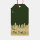 Elegant helgdag-märkre med mörk grönt bakgrund och faux guld foil gräs träd skogssilhuette.
