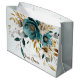 Fest Turkos Vit Blomma Gyllene Blad Elegant Stor Presentpåse. Unik, vacker, stilren design. Lätt att anpassa. Typsnitt, storlek och färger kan ändras. Matchande artiklar finns tillgängliga.