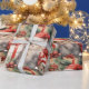 Två vackra katter som bär julhattar omges av färgfulla inslagna gåvor och evigröna dekorationer, som fångar julhelgens glatta anda med en lekfull charm.