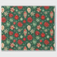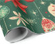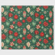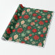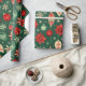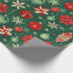 Julprydnadsföremål och blommor i ett festligt mönster med grönt, rött och grädde i färg