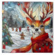 En färglös renar med ljus står stolt mot bakgrund av träd, snögubbar och glatta figurer som är täckt av snö och firar vinterfestligheter.