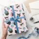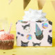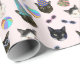 En rolig mönster med vackra och coola tittar katter med färgade konhattar och ungslasser med födelsedagsfest. Det innehåller katter, harlequinkatter och tuxedo-kattunge, omgivna av stranden bollar. Bakgrunden är en rosa i blek ro, lämplig för flickor och ungdomar. Denna underbarare presentförpackningstyp kommer att vara pappra högdager.