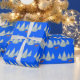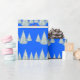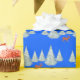 Festiv Brun Hjort under Snöiga Granar Blå Presentpapper