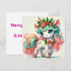 Sprid julstämning med detta charmiga kort som föreställer en enhörning prydd med röda band, sockertopp och en julkrans. Ett perfekt sätt att sända festlig magi.