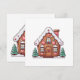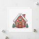 En mysig gingubrevshusillustration dekorerad med hjärtan, snö och en festlig krans på dörren.