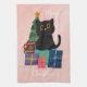 Festiv Glad Jul Söt Svart Katt Kaffe Rosa Kökshandduk