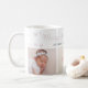 Trendig festlig modern julmugg med "Merry Little Christmas" i rosa skriftstil, 3 av dina favoritbilder med små snöflingor.