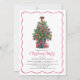 Fira säsongen med stil med denna livfulla och fantasifulla julfest-inbjudan, med en akvarell-gran som är prydd i lekfulla nyanser av rosa, magenta, lila och guld. Trädet ligger i en rustik korg omgiven av festligt inslagna presenter och gnistrar av band, bjällror, julkulor och gingerbread-utsmyckningar - allt krönt med ett charmerande magenta-band och bjällror. Handskriven rosa kalligrafi kombineras med ett rent sans serif-teckensnitt i matchande grått för en modern och glädjefull look. En trendig vågig ram avslutar designen. Baksidan är kompletterad med ett mindre träd och en mall för familjenamn och år eller två korta rader med anpassad text. Perfekt för högtidliga soaréer, cocktailf