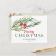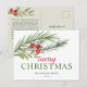 Festiv akvarellgrönska med röda bär julpostkort.