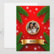 Cirkulär högtidsram prydd med guldband, omgiven av städsegröna växter och snöflingor, perfekt för säsongsbetonade designer som julkort eller evenemangsinbjudningar.