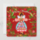 Ett glatt och modernt julkort med en ängel inspirerad av folklig konst, omgiven av festliga blommönster. Den söta lilla julängeln är klädd för en livlig julfirande. Ditt kort kommer att tryckas på ditt val av vackra pappersalternativ. Anpassningsbart med din text på både framsida och baksida. Gör detta kort speciellt med ditt eget personliga meddelande.