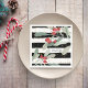 Ge din julfest ett lyft med dessa roliga pappersservetter med handmålad akvarellbotanisk mönsteruppsättning mot svarta och vita ränder och accentuerad med falska guldglittrande prickar. Lägg till din egen text för att anpassa. Festlig och rolig - perfekt för jul, nyår, vintersammankomster och bröllop.