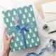 Modern och enkel julomslutning papper med vit Julgran mönster i med en agate grönt bakgrund, snyggt Skandinaviskt festivt omslag pappert för alla dina julklappar. Enbart designad för dig med Lycklig Dolphin Studio!