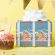 En söt blå Helgdag som är papper med ett kardinalpars mönster framför sitt festliga fågelhus. © ArianeC Illustrations-Alla höger reserverade