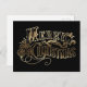 God Jul! Elegant Script Faux Gold Foil Typography on Black Background, Postcard