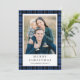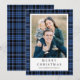 Festive Blue Plaid Photo Christmas Holiday Card.
