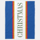 Den här färgstarka helgdag har ett vitt, vitt vågrät center rand som skisseras i färgstarkt rött och guldbrunt streck mellan feta blå yttre ränder. Den valfria CHRISTMAS-texten, om den används, kan vara personlig.