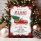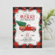 Njut av den här julinbjudan i land-format! Det är perfektens väg till inbjudan gäster till er jul party. Detta är en festlig inbjudan designad med ett rött lastbil som bär Julgran, på en träbaserad och röd buffelbaksida!