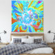 Festive Chartreuse and Blue Dahlia Flower Petals Canvastryck