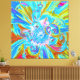 This Original Digital Oil Painting by My Rubio Garden features Festive Chartreuse and Blue Dahlia Flower Petals with Pink, Aqua and Red Accents. The result is a colorful, beautiful floral abstract painting that you will love!