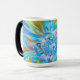 Festive Chartreuse och Blue Dahlia Flower Petals Magisk Mugg