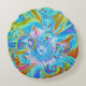 Festive Chartreuse och Blue Dahlia Flower Petals Rund Kudde