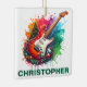 Bring bold sound and electric style to your holiday tree with this vibrant electric guitar Christmas ornament! Featuring a vivid watercolor splash background, a festive Christmas tree, colorful baubles, and a detailed electric guitar wrapped in holiday cheer, this ornament is a must-have for rock stars at heart. Add a personalized name for the perfect gift for guitar players, music teachers, band members, or aspiring rockers. Ideal for fans of classic rock, blues, metal, and all things electric, this eye-catching decoration adds a high-energy twist to any music lover’s Christmas celebration. Great for teens, adults, and anyone who loves to jam during the holidays! Edit text from product page or to change font style or color, use the design tool.
