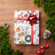 This Festive Christmas Wrapping Paper features a delightful hand-drawn pattern of Santa Claus, snowmen, Christmas trees, gifts, bells, and candy canes — all in bright, cheerful colors that capture the magic of Christmas.
