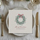 Classic style Christmas party napkins featuring festive Christmas wreath with personalized family name.