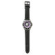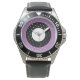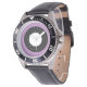 Den här moderna roligten har en bred svart mitten och ett stort yttre cirkulärt rand med lila i sidled, fyllt med litet vitt polka dots i sidled. En vit cirkel finns i mitten av designen.