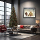 En festlig scen visas i den här bilden och visar ett jolly Jultomten med ett övermått av presenter. Jultomten figur har en framträdande plats i centrum och är klädd i sitt traditionella röda och vita kostym med fluffy hatt. Han är lastad med gåvor och uteslöt helgdag när han sprider glädje. Den övergripande sammansättningen framkallar en varm och mysigt helgdag, perfekt för att sprida julandan