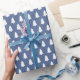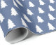 Modern och enkel julomslutning papper med vit Julgran mönster på nederländsk blå bakgrund, snyggt Skandinaviskt pappert omslag för alla dina julklappar. Enbart designad för dig med Lycklig Dolphin Studio!