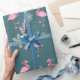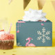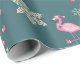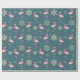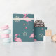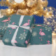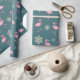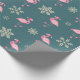 En lekfull jul mönster med rosa flamingos klädd i sjalar, tomtskålar och stövlar, omgivna av ömtåligt snöflingor på tealbakgrund. Perfekt för helgdag!