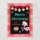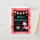 This cute and fun holiday postcard can be personalized with a family name or title. It features an adorable flamingo in a santa's hat on a pink and red plaid background. The text combines sans serif fonts for a stylish and modern look. Winter snowflakes and patterned baubles add a festive touch.