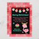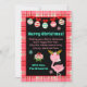 This cute and fun holiday card can be personalized with a family name or title. It features an adorable flamingo in reindeer antlers on a pink and red plaid background. The text combines sans serif fonts for a stylish and modern look. Winter snowflakes and patterned baubles add a festive touch.