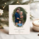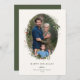 Festive Helgdag Botanical Foliage Oval Ram, platt fotokort. Funktioner, Oliv grönt färg-typografi och matchande solid färg-backning.