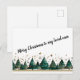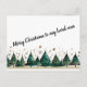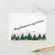 Detta charmerande julkort fångar helgdag anda med en aning lekfull elegans. Över den nedre halvan står en rad stiliserade evergreen träd i glatt sammansättning, deras grenar försedd med vismiska ikoner som stjärnor och snöflingor. Träd varierar storlekt och skapar en underbar rytm och rörelse, som om de sveper till en tyst julmelodi. Ovanför denna festliga sammankomst är hälsning "God jul till mina nära och kära" skriven i ett flytande, kursivt typsnitt, vilket gör att årstidernas tidningar får en personlig beröring. Bakgrunden är en pristinvit, som ser till att de komplicerade detaljerna i träd och det hjärtliga budskapet hamnar i centrum.