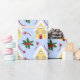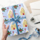 his charming holiday pattern features adorable gingerbread houses with red doors and snowy white roofs, interspersed with festive holly leaves and berries. The light blue background adds a wintery feel, making it perfect for Christmas.