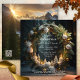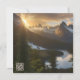 En modern konstnärlig julinbjudan med en julfest med snö och prydnadsföremål. Baksidan visar en målning av ett bergslandskap vid solnedgången. Du kan också ta bort det om du föredrar ett foto av anpassningsbarna eller ett vanligt färg. En QR-kodmall läggs till så att du kan. Inbjudan är vacker för ett privat party och även för ett företagsevenemang.