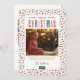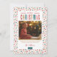 Modern anpassningsbar tryckte ut julfotokort med en enkel DIY-mall för anpassning. Den här festliga designen har färgstark typografi och en söt abstrakt punktbakgrund i rött, grönt, guld och rosa färg. Lägg till dina familjefotografier, personliga hälsning, namn och året. Använda verktyg för att redigera typsnitt och färg. Baksidan har utrymme för att lägga till fler foton och text.