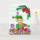 God jul-kort med hand plockade som viskdjur, helgdag och gräs och Poinsettia gräns och ett sött hand plockade som håller sig kvar med en nalle.